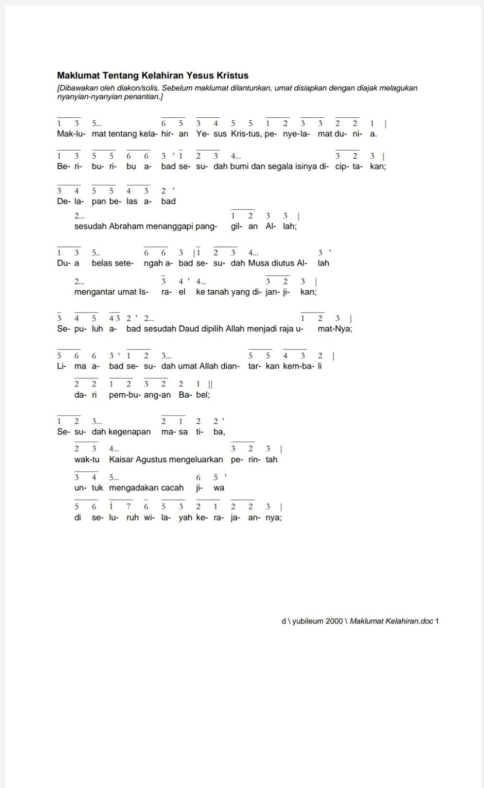 Maklumat Tentang Kelahiran Yesus Kristus