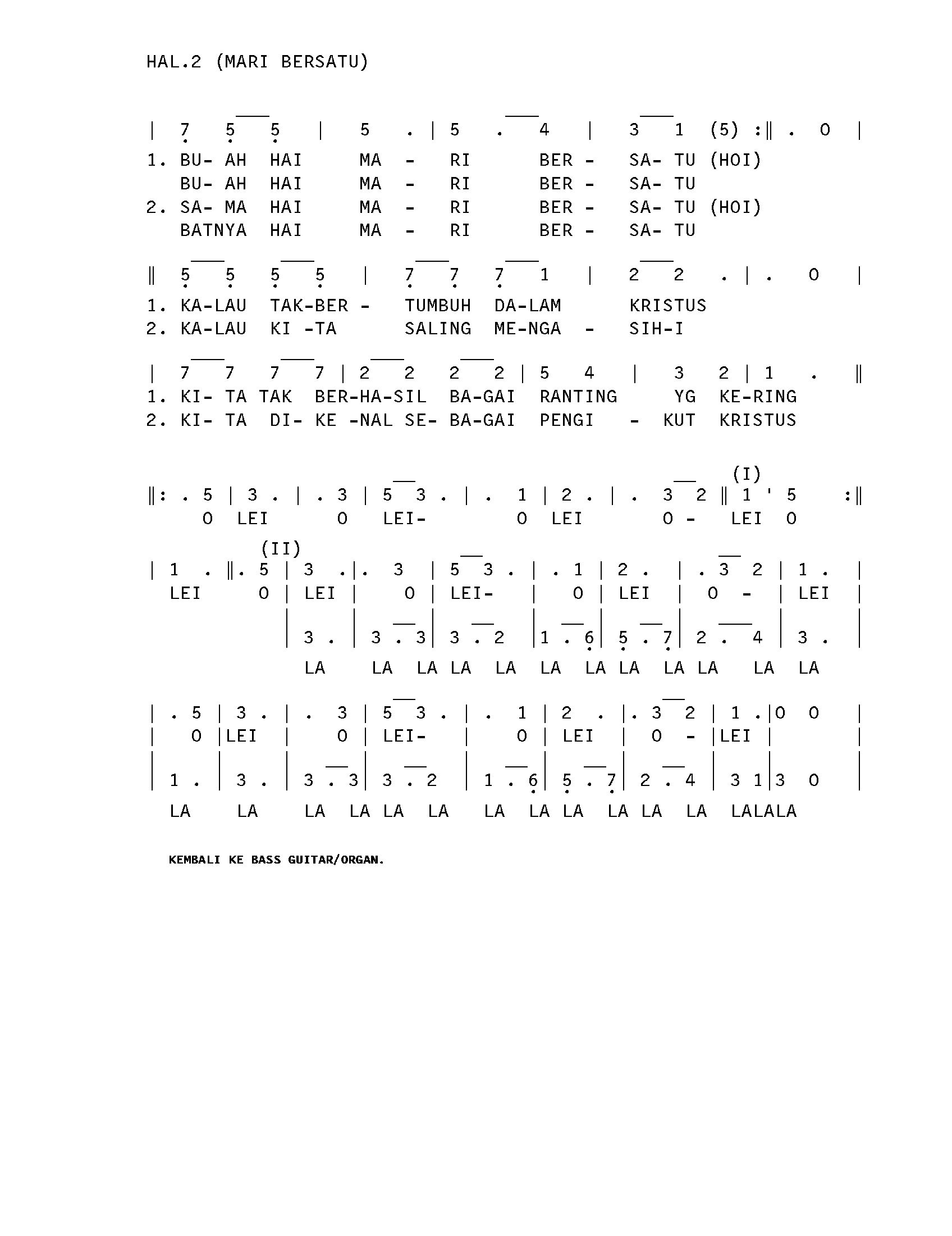 TEKS LAGU. MARI BERSATU. GATHER 1. HAL. 238