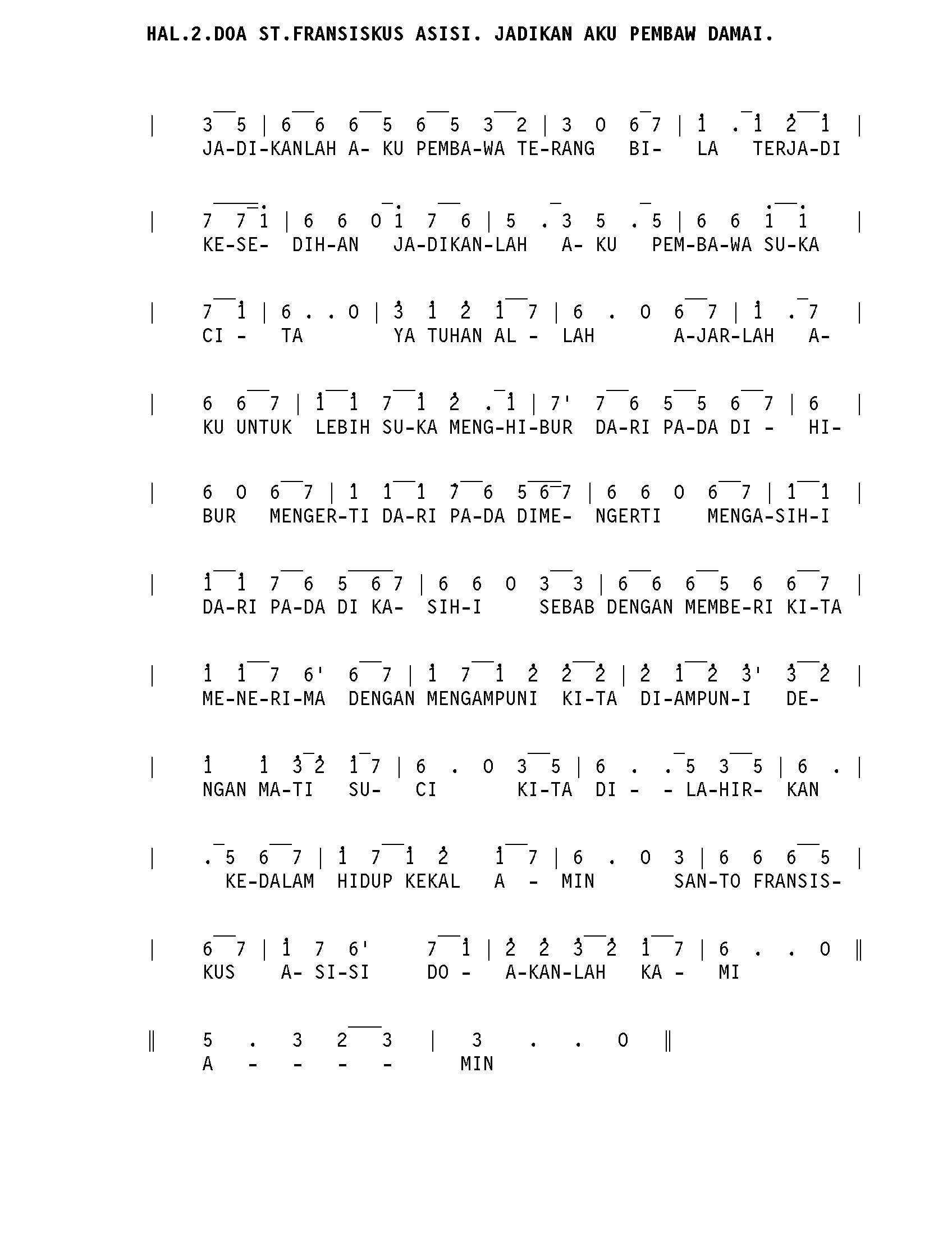 Jadikan Aku Pembawa Damai. Doa St. Fransiskus Asisi.
