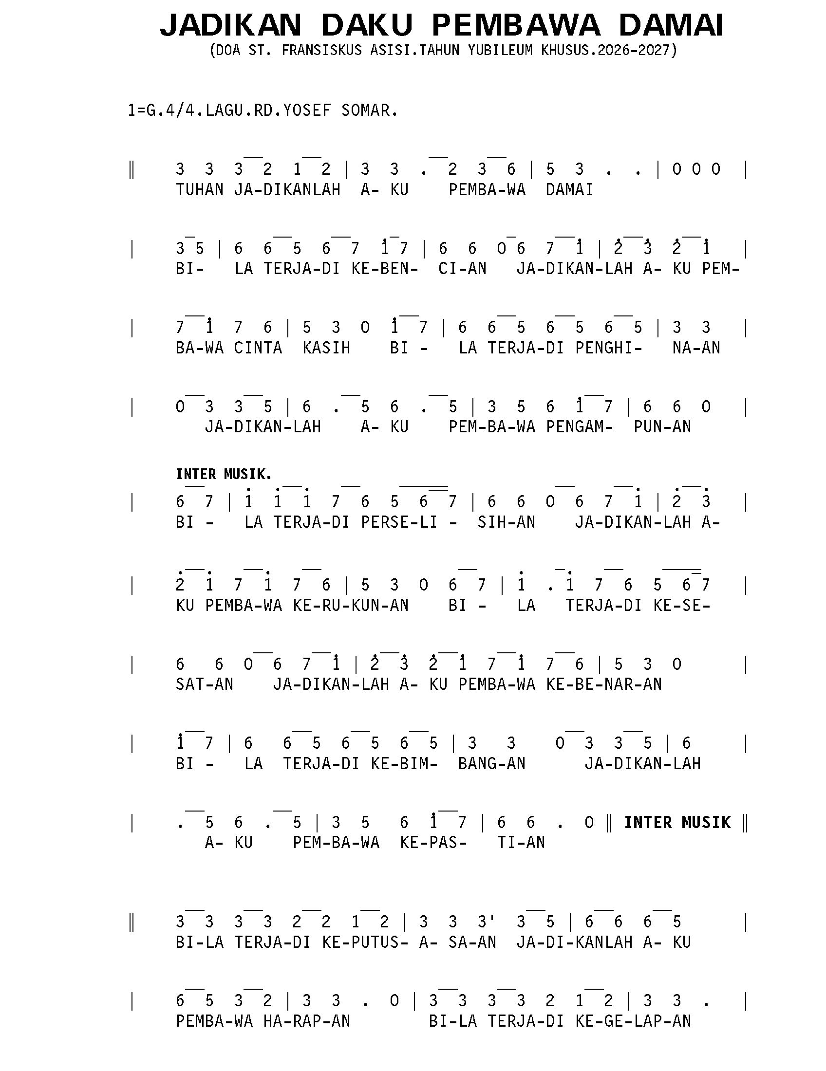 Jadikan Aku Pembawa Damai. Doa St. Fransiskus Asisi.