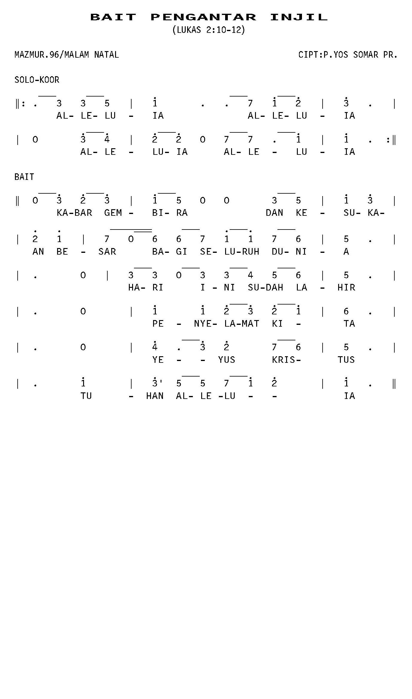 GATHER 1. BERSERAH SETIA. LAGU/ARR. : A. WAGNER/HARRY LETSOIN. GATHER 1. HAL. 335 GATHER 1. HAL. 335 |