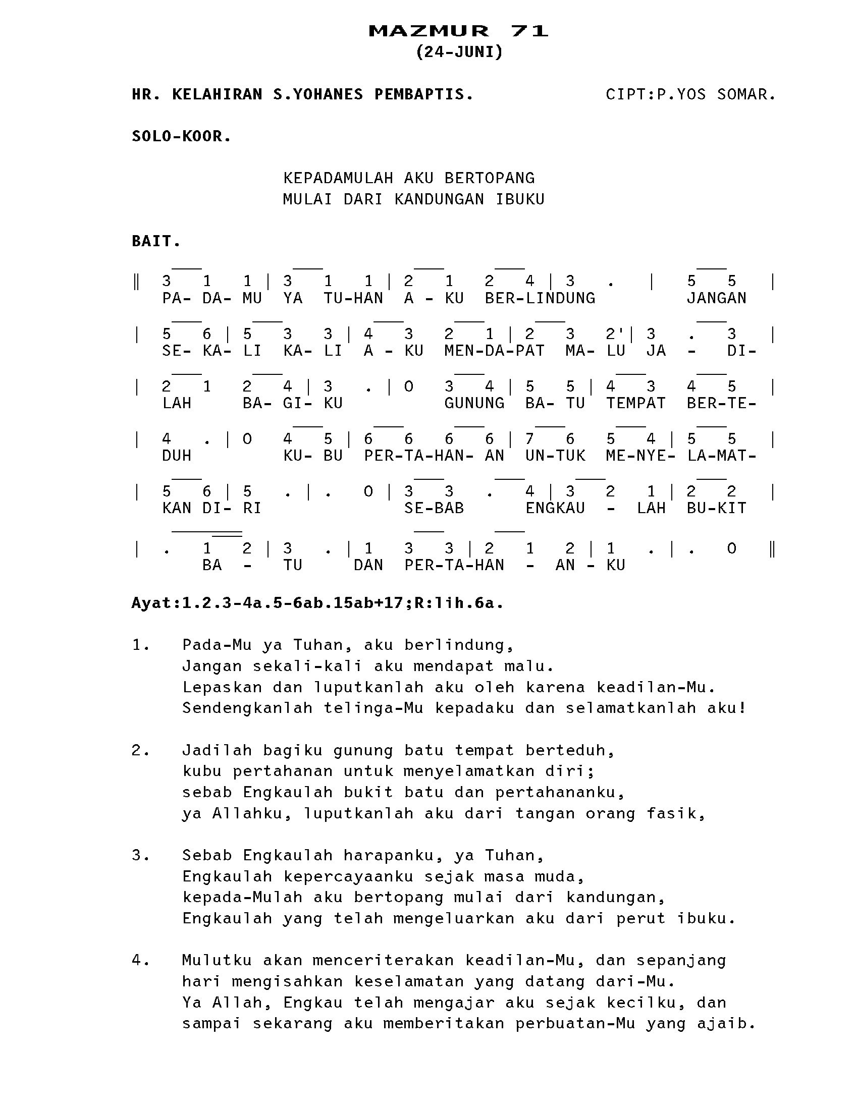 GATHER B. MAZMUR 71. HR. KELAHIRAN ST. YOHANES PEMBAPTIS. 24 JUNI. HAL. 127